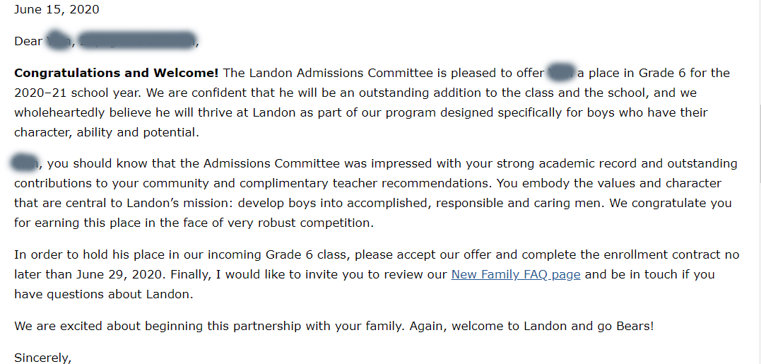 金同学从小学二年级开始就移民澳大利亚,在四年的海外生活中,虽刚开始难以适应国外的纯外语环境,但经过刻苦的练习外加家教英语老师的严加调教,最后不但克服了英语口语的障碍,更成为学校的celebrity student。金同学刚开始答题思路不是很清晰,外加上申请期间要搬家到美国去,故我们的文案老师就见缝插针地为孩子提供面试辅导,争取在正式面试前让孩子对面试题目做到胸有成竹。国外的教育经历使得推荐信书写成了难题,学校规定老师不得出具书面的推荐信。鉴于这种情况,我们的文案老师努力与申请学校保持频繁沟通,向其详细阐述具体情况,最后申请学校同意以电话的形式向金同学所在的澳大利亚公立学校了解金同学的表现,学校给予金同学的高度赞扬也让美国学校对孩子刮目相看。最后,孩子优秀的表现以及我们共同的努力成功帮金同学获得多所学校的Offer。