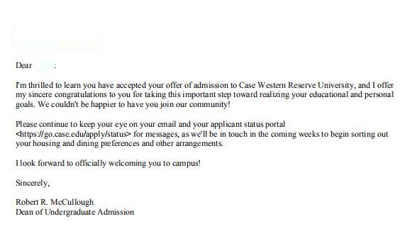 王同学的SAT成绩一直不是很理想,她经过几次刷分没能达到目标分数,在这种情况下,文案老师一直耐心鼓励学生并和她认真打磨申请文书。一开始,王同学被凯斯西储大学放到了WaitingList,但是我们没有放弃,一直在为学校提交更新的申请资料并写邮件争取。最终,在4月份的时候,学校终于为王同学发出了正式录取。王同学最后拿到了很多学校的录取OFFER,最终选择去凯斯西储大学。