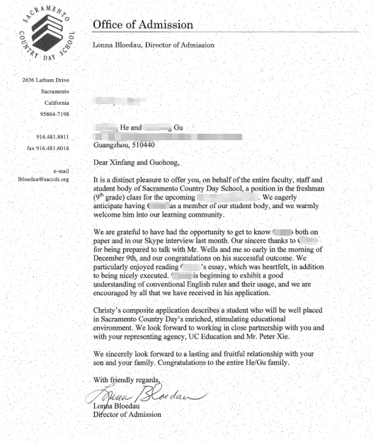 录取院校:萨克拉门托贵族学校Sacramento Country Day School等