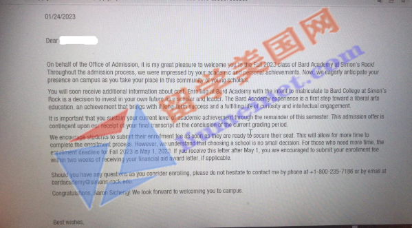 2023年留美网收到了不少学生的好消息,真心为孩子们能够进入理想院校就读感到开心,自身也有种自豪和荣誉感,其中不乏有火速通过面试斩获offer的惊喜。今天留美网和大家分享一个面试第二天就斩获巴德高中Bard Academy at Simon's Rock录取offer的成功案例,希望对诸位同学和家长今后在美高择校和申请方面有所助益: