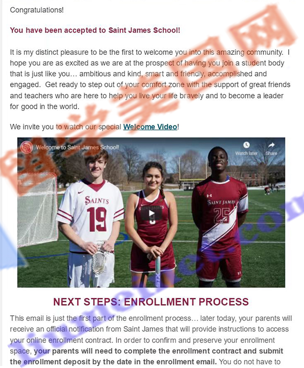 留美网喜报频传,恭喜留美网Y同学斩获圣詹姆斯中学Saint James School录取offer~!