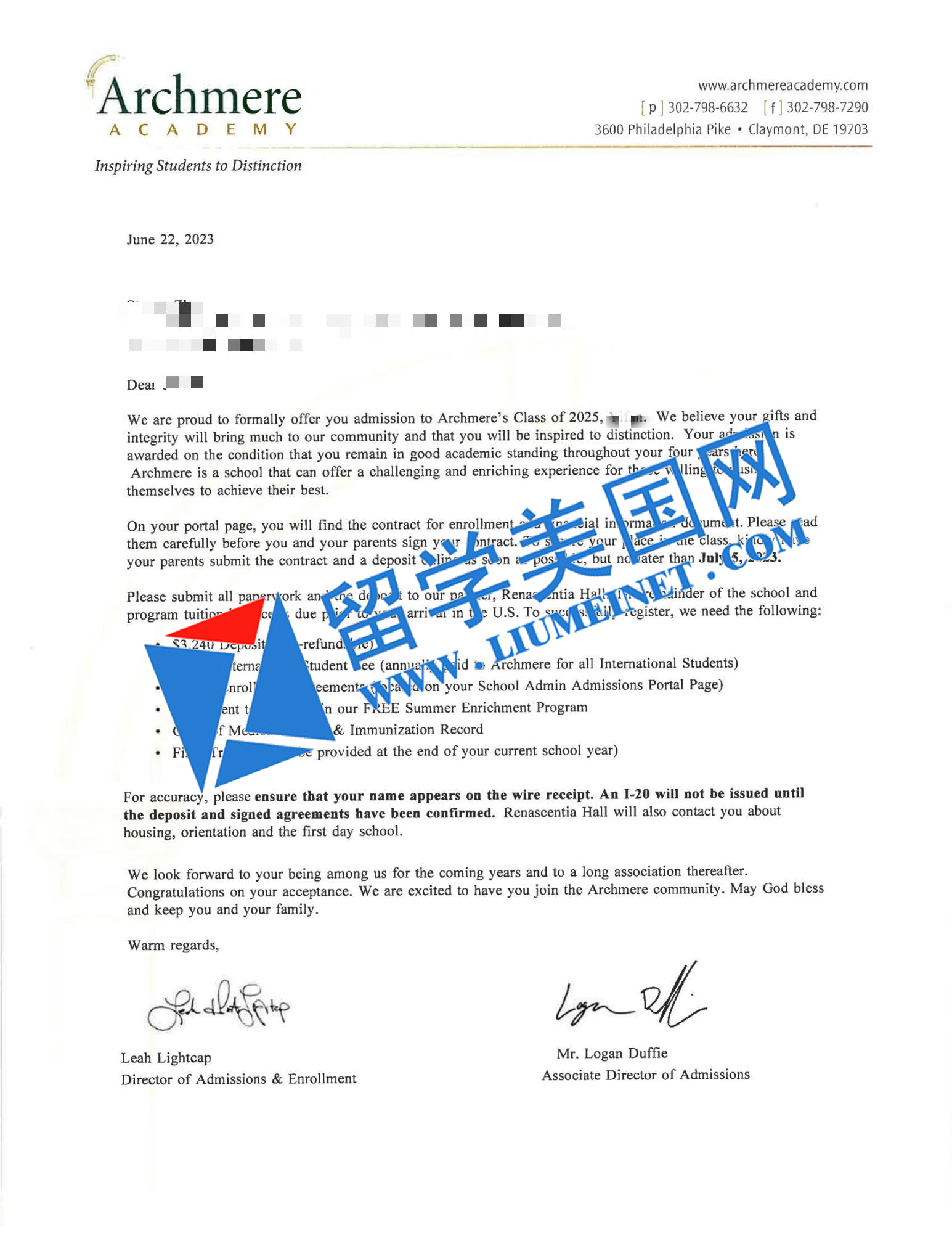 恭喜留美网Z同学斩获阿基米尔中学录取!