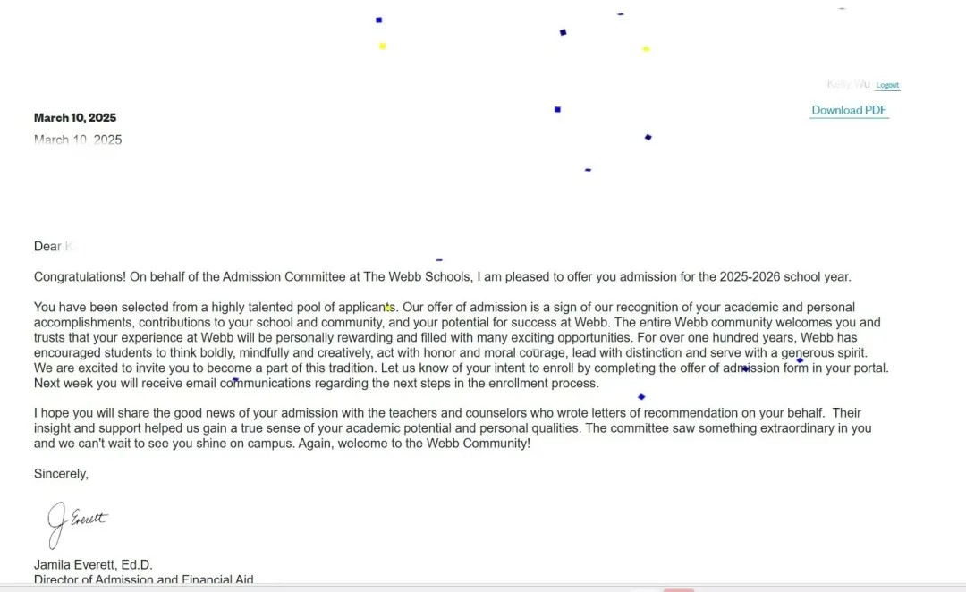 【录取喜报】恭喜留美网学子W同学斩获加州韦伯中学录取offer