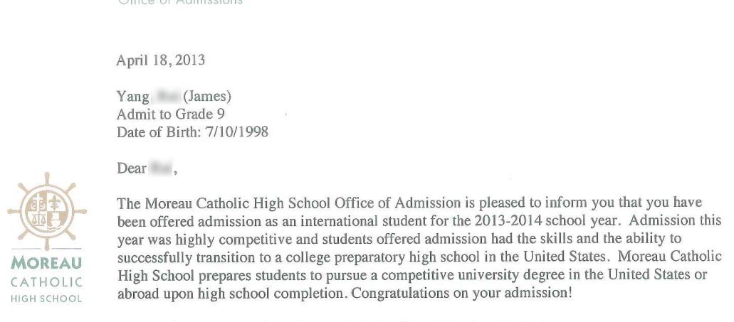 案例策划:考虑到以上的各种因素,我们决定尽快确定选校。接到case之后,我们迅速和相关学校确定是否还有剩于位子。由于杨同学家里有移民加州的倾向经过一系列的筛选,终于确定了位于加利佛尼亚州的三所学校,亚罗海德基督中学,莫若天主教高中和主教阿莱马尼高中。这三所学校地理位置优越,学术强而且入学条件严苛。确定了学校之后,我们就马上着手申请并撰写文书,我们相信文书是学校对学生的第一印象,校方会在字里行间判断申请者是否是学校最需要的人才。杨同学开朗外向,特长丰富,擅长合唱、主持、萨克斯、篮球、足球、游泳等,还参加了很多公益社会活动,这些都是我们在文书中重点体现的,也是学校较为看重的。有了让人眼前一亮的文书,最后就是面试了。面试一关对口语较好的杨同学来说,并非难事,但是我们并没有松懈。终于,功夫不负有心人,在四月六日于我公司举行的亚罗海德基督中学面试会上,杨同学大方幽默的回答引得校长Cole当即拍板,高兴地录取了杨同学。在随后两所学校的面试中,杨同学也是应对自如,学校很快给出了肯定的答复。
