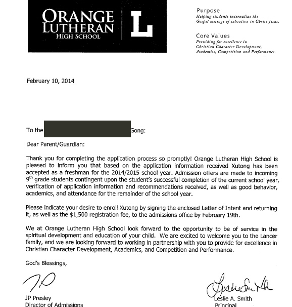 龚同学脱颖而出 成功拿到加州4所高中OFFER