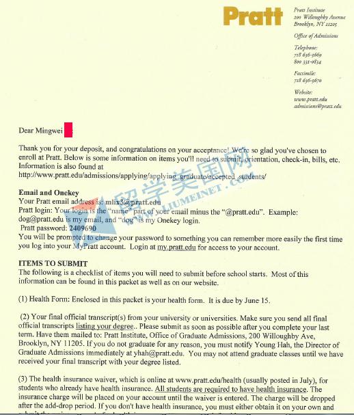 恭喜李同学获得顶尖高中普瑞特艺术学院的录取!