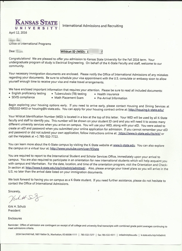 恭喜白同学获得堪萨斯州立大学录取