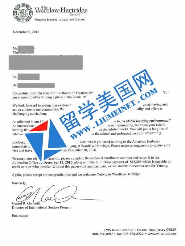 但是经过我们的努力,不仅高效递交了申请,让谢同学在面试中取得了良好的表现,并最终在没有美国老师推荐信的情况下成功拿到沃德洛中学的录取,这不能不说是一个奇迹。沃德洛中学是一所非常优质的中学,录取门槛很高。普通中学尚且不能没有推荐信,更何况沃德洛。但是在我们共同的努力下,我们做到了。