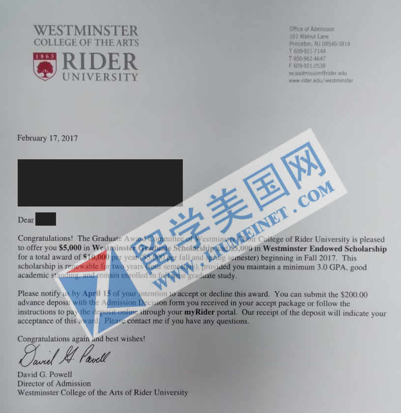 录取院校:WESTMINSTER CHOIR COLLEGE OF RIDER U.