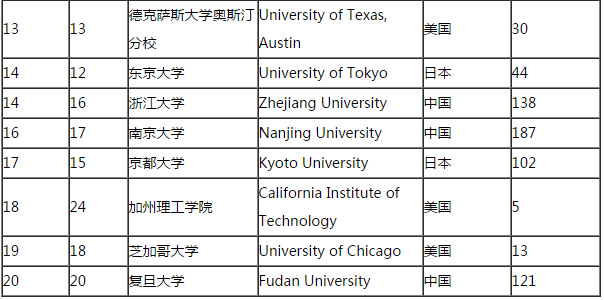 在本次2017年USNEWS化学专业世界大学排名中,美国大学入围23所,其中加州大学伯克利分校和麻省理工学院都是一直处在一二名的领先位置。英国大学入围三所,相比之下本次入围名额较少,但是剑桥大学在12名,较为领先。日本大学入围四所,依然是东京大学和京都大学领先。
