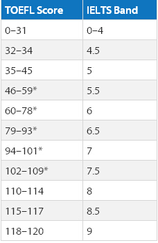 雅思对应的托福成绩: