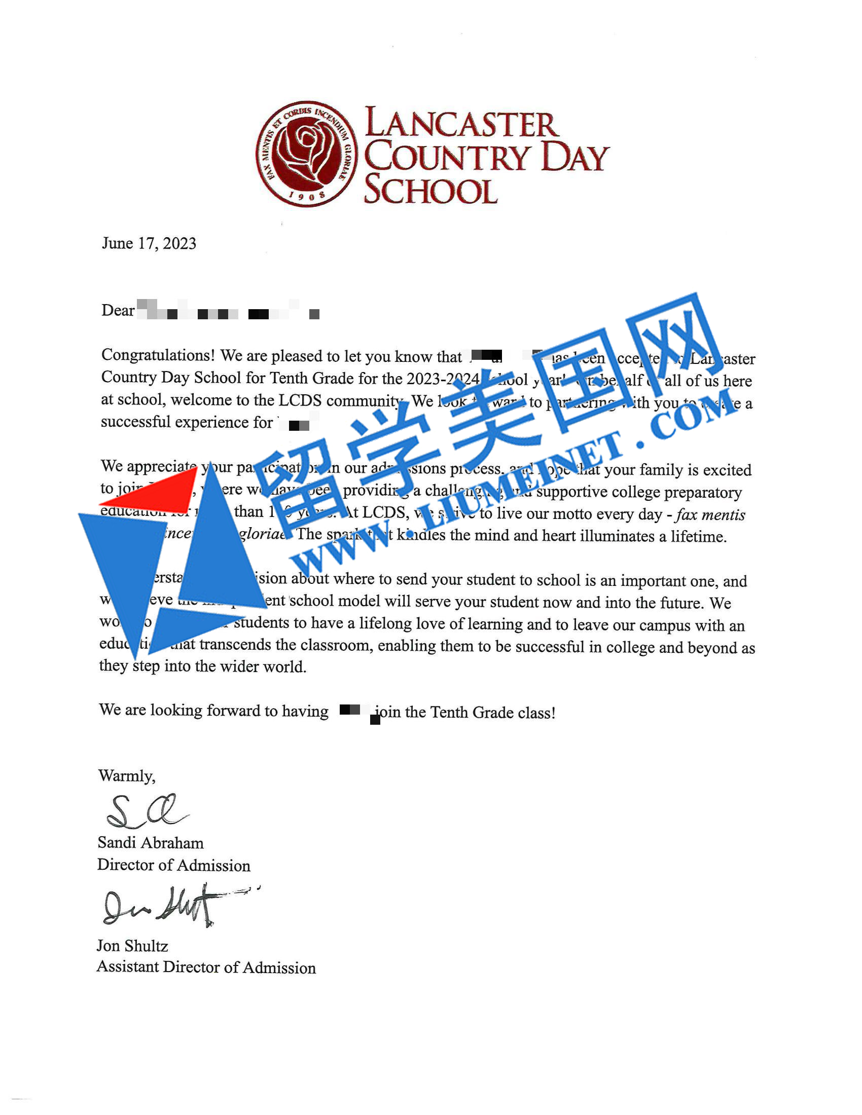恭喜留美网Z同学斩获兰卡斯特学校Lancaster Country Day School录取offer