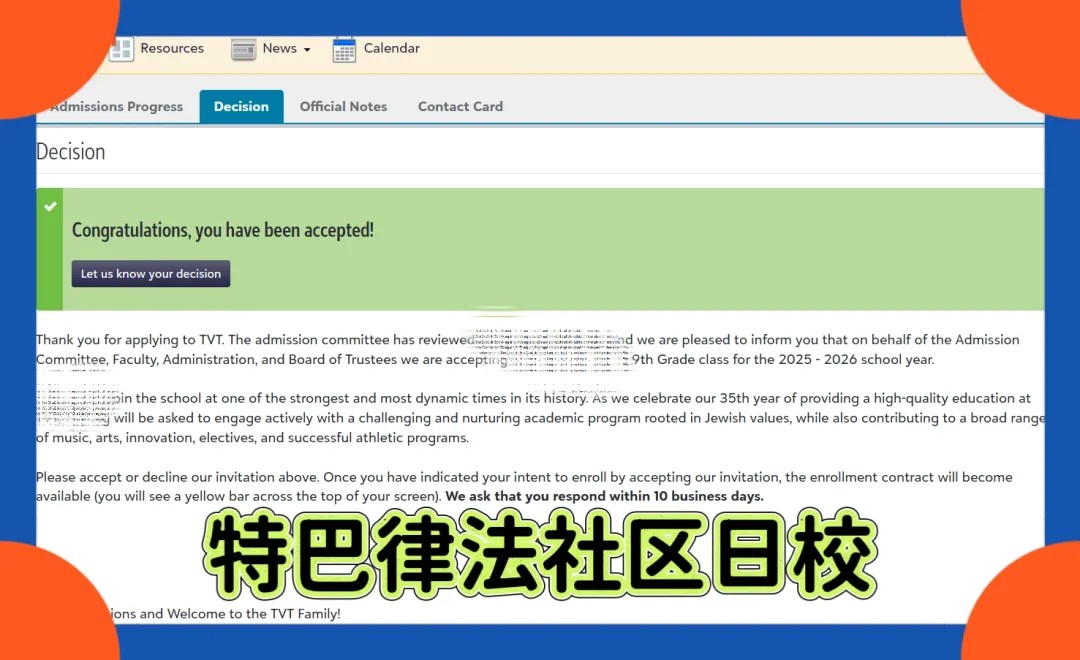 【录取喜报】恭喜留美网学子L同学斩获特巴律法社区日校录取offer