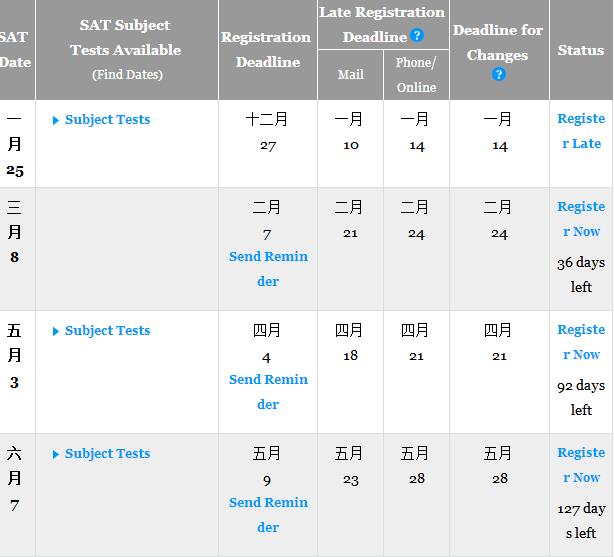2014年上半年SAT考试时间