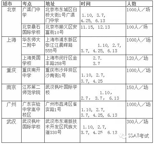 2015年SSAT考点的内容全部在这里了,同学们一定要提前报名考试,选好自己的考场,最后祝愿大家在考试中取得好成绩。