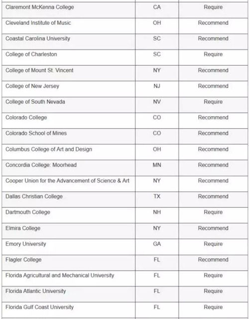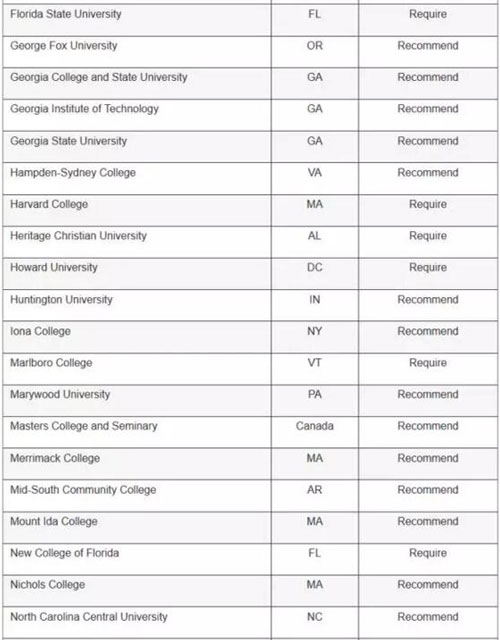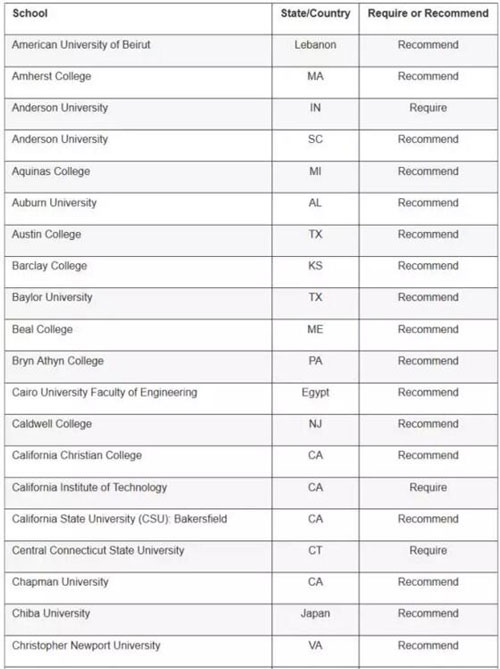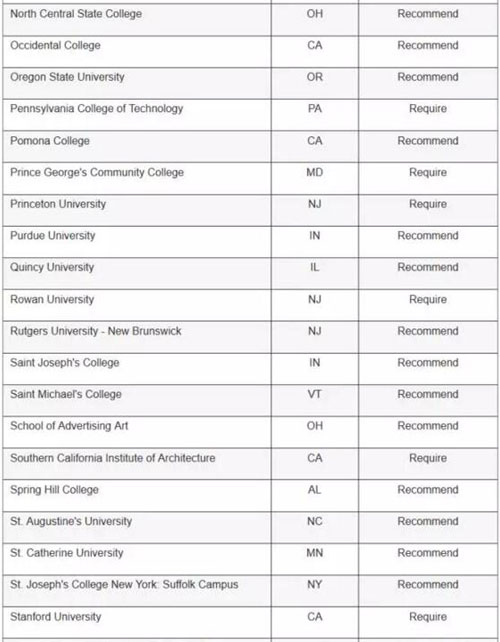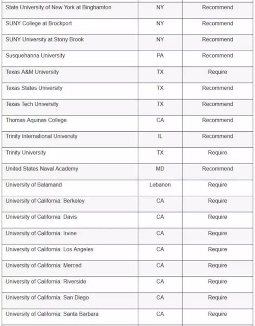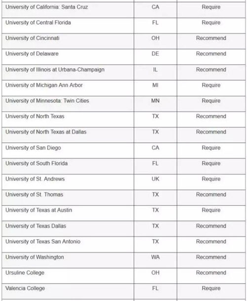 顶级高校: 哈佛大学、普林斯顿和耶鲁大学都要求申请者提交SAT写作成绩,而布朗大学、宾夕法尼亚大学、南加大、纽约大学、范德堡大学和麻省理工就不需要。