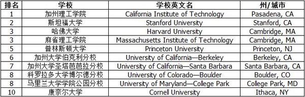 U.S.NEWS量子物理专业美国大学排名