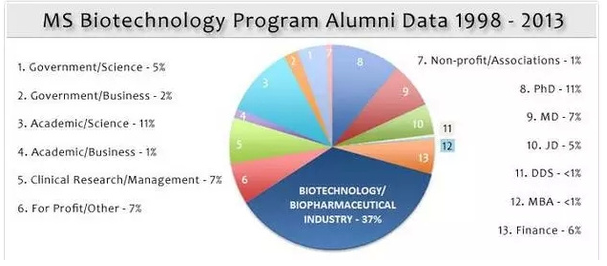 乔治城大学生物技术硕士项目1998年-2013年的就业情况