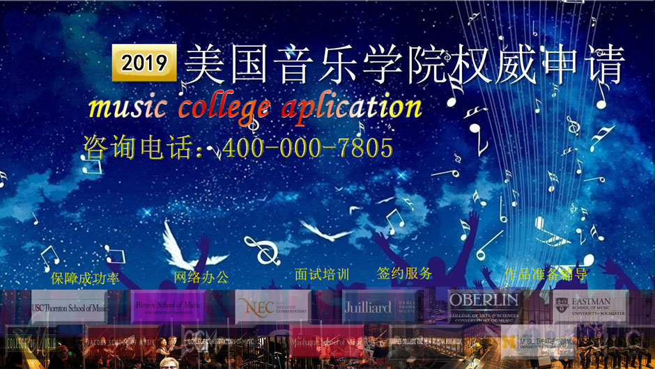 · 留学费用相对高 一般来说,音乐学院每年的花费要在40000--60000美元/年 · 申请截止日期早 12月1日是很多音乐学院的申请截止日期,像茱莉亚音乐学院,波士顿大学音乐学院,也有12月15号的截止日期,像柯蒂斯音乐学院。 · 试音面试很重要 面试是否在中国可以?不参加学校面试是否可以申请?这是大家最关心的问题之一。很明确的说,有几所学校在中国每年都会安排老师面试,像奥柏林音乐学院、旧金山音乐学院等等。 · 标准化考试成绩要求 申请美国的音乐学院,标准化成绩都是什么要求?本科申请相对来说要求没有那么高,很多顶尖的音乐学院像茱莉亚音乐学院、曼哈顿音乐学院都是提供语言培训课程的。 · 本科申请优势大 通过几年的经验,我们发现,很多学生是在读本科之后才考虑申请美国的音乐学院研究生专业。其实读完高中申请美国音乐学院本科是更有优势的。 |