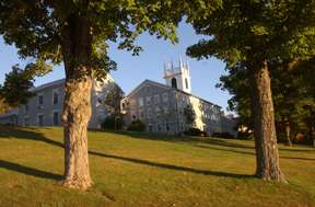 校园占地100英亩,抛去主校园50英亩的建筑区的校园环境具有新英格兰独特风格的美景,建筑与自然环境相得益彰,绿树环绕,蓝天白云,全校都是无烟区,每年秋天红叶遍山,美不胜收!