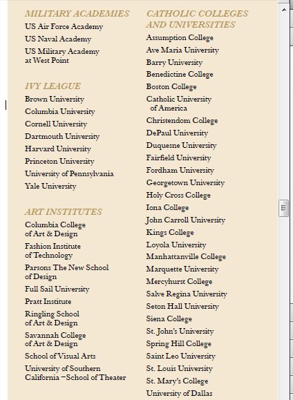 常青藤大学:哈佛大学、哥伦比亚大学、康奈尔大学、布朗大学、达特茅斯大学、普林斯顿大学、宾大、耶鲁大学