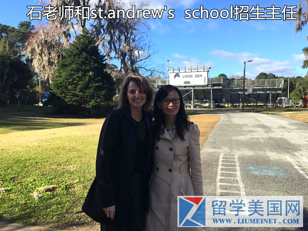 圣安德鲁中学 St. Andrew's School是一所IB课程学校,位于艺术氛围非常浓厚的艺术之都萨凡纳,招生主任awad非常热情接待了我们,她儿子也正在学中文,去年她参观访问了中国的北京、上海等城市,对中国文化非常感兴趣。