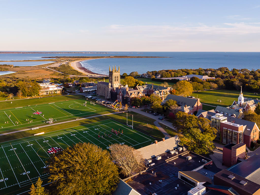 圣乔治中学位于罗德岛州的纽波特市的山上,学校建成于1896年,是罗德岛排名第一的寄宿学校。去过这里的人都知道纽波特是最典型的新英格兰城市,有意大利风格的街道风景,拥有的独特的文化底蕴。St George's School是一所优秀的教会学校,有125英亩的校园和先进的体育设施以及学术设施,实行小班教学且对学生要求十分严格,鼓励学生积极对话和辩论。