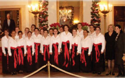 学校的合唱团曾在白宫为美国高层领导者进行表演,得到领导人的接见,获得极大的认可和赞誉。