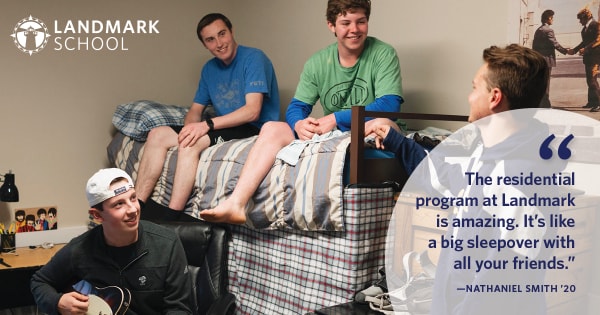 寄宿条件:在Landmark高中有7个男女生宿舍,其中有16至35名学生。房间大多是双人间,但大约30%是单人房。总共有160名学生住在校园里,大约占高中学生总数的一半。每个宿舍都有一个公共房间,配备了游戏、电视、乒乓球桌等等,创造了一个吸引人的、休闲的环境,让学生放学后和自习厅前后聚在一起。每名寄宿学生于周日至周四晚上8:00参加自修厅。到晚上9点30分。